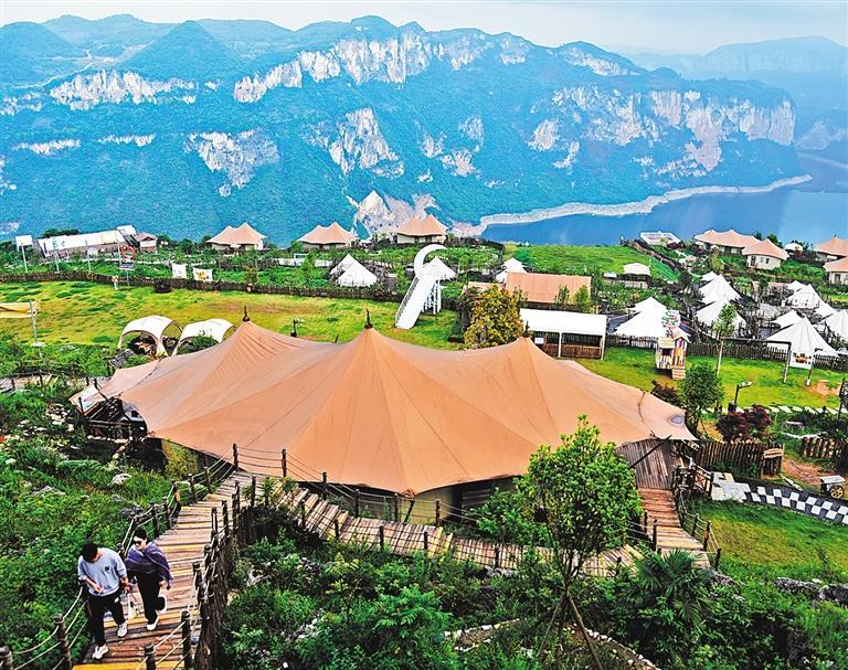 ▼5月16日,游客在贵州省黔西市新仁苗族乡乌江源景区度假营地游玩。