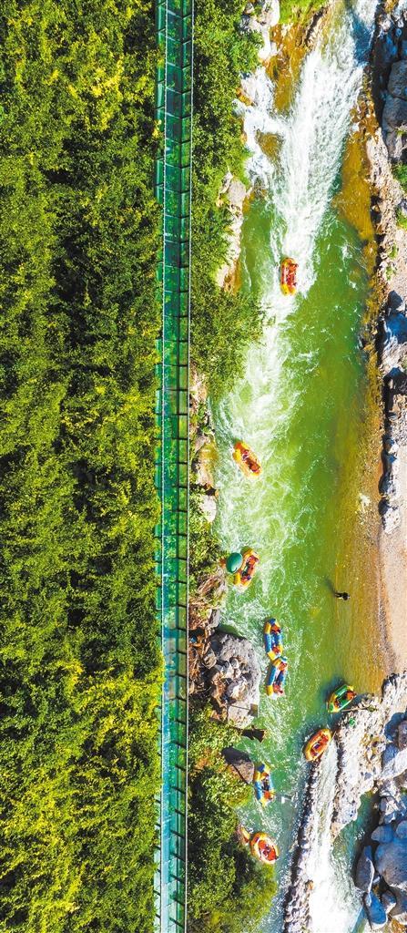 ◀5月17日,游客在湖北省兴山县朝天吼景区,尽情享受漂流运动带来的惊险刺激。