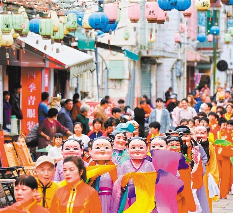 ◀5月17日,浙江省嵊州市崇仁古镇文化活动丰富多彩,游客纷至沓来。