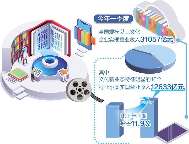 今年一季度,全国规模以上文化企业实现营业收入31057亿元,其中,文化新业态特征较为明显的16个行业小类实现营业收入12633亿元,比上年同期增长11.9%。这些数据反映了文化产业向“新”而行,产业发展势头强劲,正在成为经济增长新动能、新引擎。