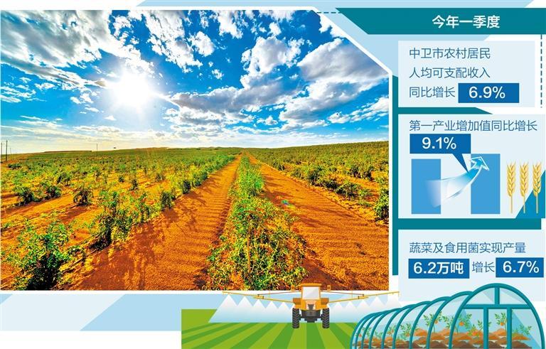 一季度,中卫市蔬菜及食用菌种植面积3.4万亩,增长12.1%,实现产量6.2万吨,增长6.7%;肉牛、肉羊、家禽出栏4.2万头、40万只、69万羽,分别增长25%、22.7%、60.3%;奶牛存栏14.3万头,增长5.5%。农林牧渔业总产值同比增长8.3%,第一产业增加值同比增长9.1%,二者增速在宁夏5个地级市中均位列第一,持续带动农民增收。一季度,中卫市农村居民人均可支配收入同比增长6.9%,快于该市同期城镇居民收入增速。