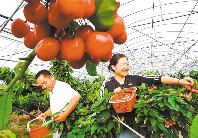 5月20日,四川省达州市通川区金石镇金山村秋实种植专业合作社种植园内,村民正在采摘车厘子。近年来,当地立足大巴山区具有的富硒土壤等资源优势,瞄准粤港澳大湾区“菜篮子”需求,支持引进20多个车厘子新品种进行种植,实现了村民增收。邓良奎摄(中经视觉)