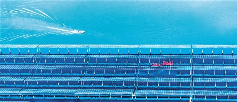 ▲5月21日拍摄的湖北省应城市渔光互补发电项目。项目实现了上可发电、下可养殖的立体协同增效。