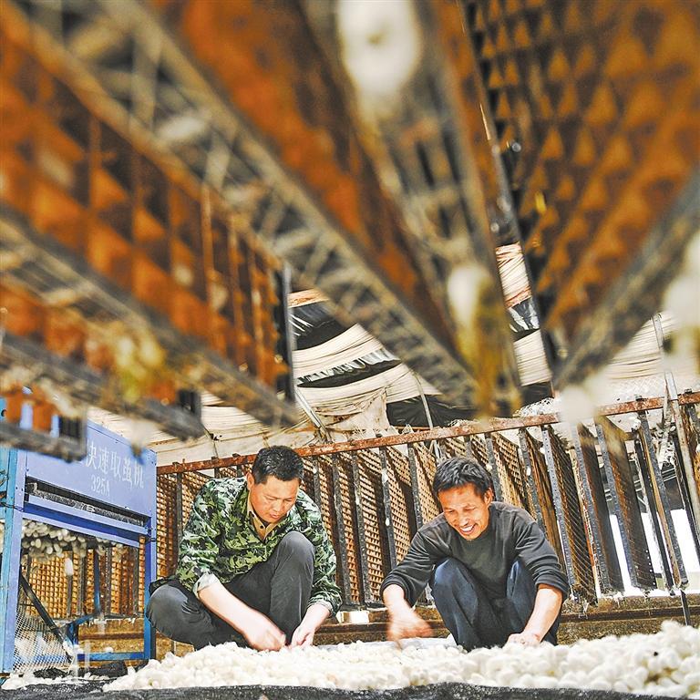 ▲5月13日,湖南省道县仙子脚镇蒋家岭村营山养蚕合作社,农户在分拣蚕茧。桑蚕产业已成为当地农民增收、农业增效和乡村振兴的重要产业。