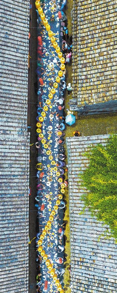 ▶5月19日,游客在浙江省宁海县前童古镇品尝长桌宴。作为全国乡村旅游重点镇(乡),前童古镇通过促进乡村旅游与文创、民俗、节庆深度融合,提升影响力和美誉度。