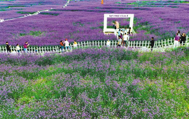 ▲5月19日,贵州省贵阳市花溪区高坡苗族乡石门村,300余亩马鞭草花竞相绽放,吸引众多游客前来赏花游玩。