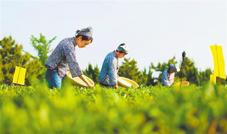 ◀5月23日,山东省日照市东港区卧龙山街道吴家台村云过山丘茶园。茶园推出采茶表演、采茶比赛等项目,为游客带来乡村文旅体验。