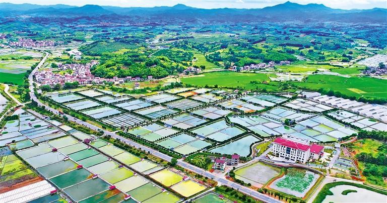 六月一日,江西省南丰县太和镇,养殖塘星罗棋布、色彩斑斓,勾勒出一幅和美乡村生态画卷。
