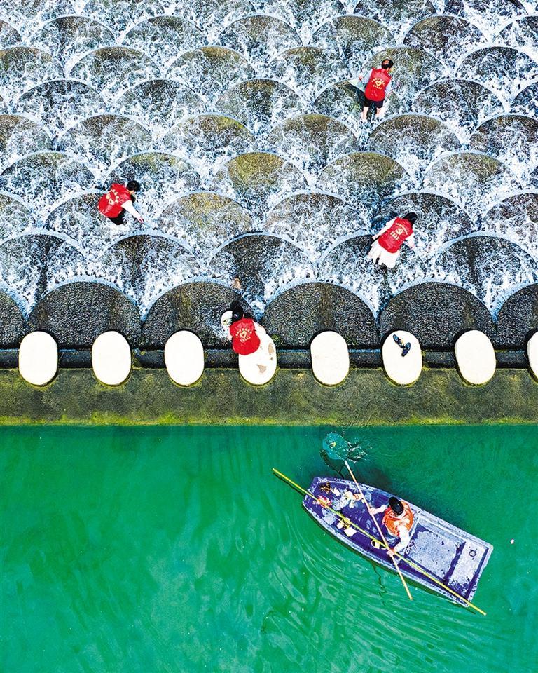 6月4日,浙江省湖州市长兴县毛家店村,党员志愿者正在打捞水面漂浮物。近年来,当地积极推进“幸福河湖”建设,全力打造“河畅、水清、岸绿、景美”的生态环境。王徐超摄(中经视觉)