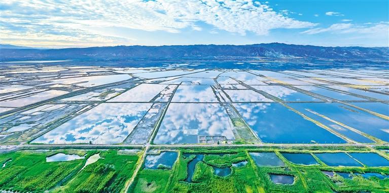 6月5日拍摄的山西省运城市盐湖生态湿地。近年来,当地坚持保护优先、绿色发展,通过“退盐还湖”“还湖于民”生态修复,将盐湖从工业矿区打造成生态保护区、旅游打卡地,生态环境持续向好。闫 鑫摄(中经视觉)