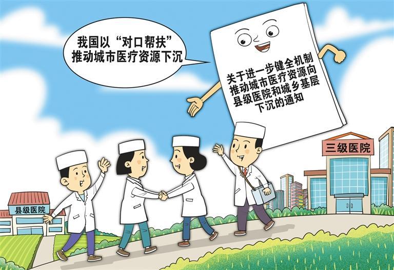 近日,国家卫生健康委等三部门印发《关于进一步健全机制推动城市医疗资源向县级医院和城乡基层下沉的通知》,提出多项具体举措,引导城市医疗资源下沉基层。这将有利于进一步缩短优质医疗服务抵达老百姓家门口的时间和距离。近年来,我国大力建设国家区域医疗中心,组建各种形式的医联体,推动优质医疗资源下沉,增强欠发达地区、基层和农村的医疗服务能力。也要看到,我国优质医疗资源总量不足且分布不均,基层医疗卫生机构的服务能力也存在短板。接下来,相关部门应协同发力,从提高县级医院管理水平、加快培养专业人才梯队、加快推动信息互联互通、鼓励提供互联网诊疗等多方面推动基层医疗市场发展,打通堵点,补齐基层医疗短板,化解基层“看病难”问题。(时 锋)