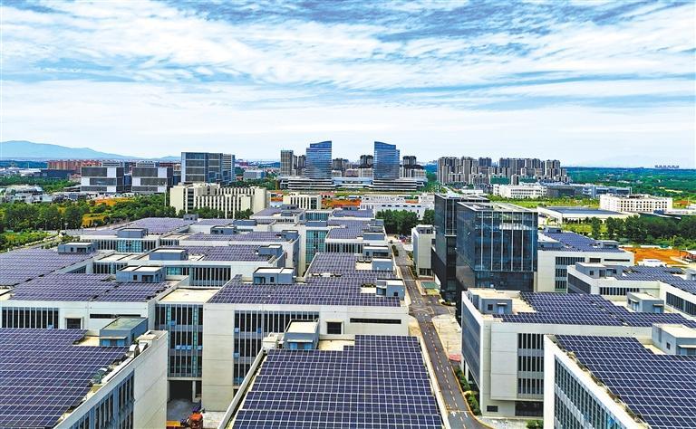 6月3日,江西省赣江新区中医药科创城创新示范基地,一排排太阳能光伏组件源源不断产生清洁电能。近年来,赣江新区鼓励企业利用厂房、办公楼推进屋顶光伏发电项目建设,为低碳发展注入清洁动能。袁 骏摄(中经视觉)