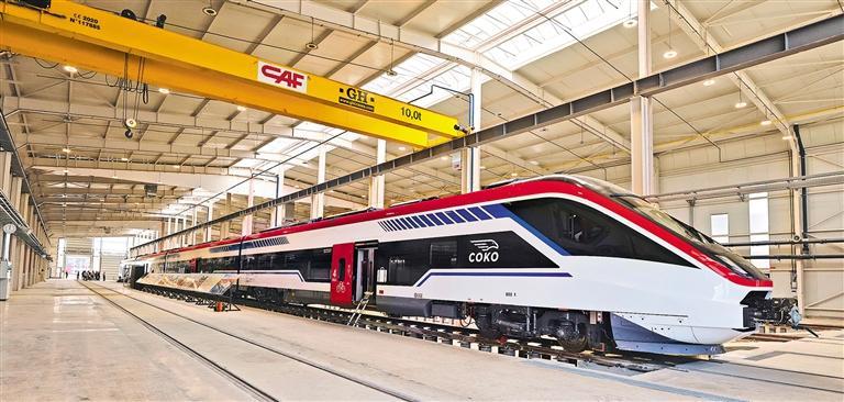 6月7日,中国研制的匈塞铁路高速动车组在塞尔维亚贝尔格莱德泽蒙车辆段亮相,标志着中国高速动车组首次进入欧洲,中国高端轨道交通装备走出去取得重大突破。任卫云摄(新华社发)