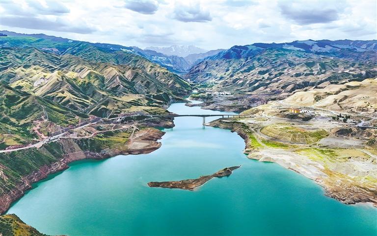 6月8日,新疆昌吉回族自治州呼图壁县的呼图壁河与重叠延绵的山峰和远处的雪山相映成景。近年来,当地不断加强河道综合治理,通过开展河道清淤、岸坡防护、修建堤坝等措施,生态环境持续向好。陶维明摄(中经视觉)