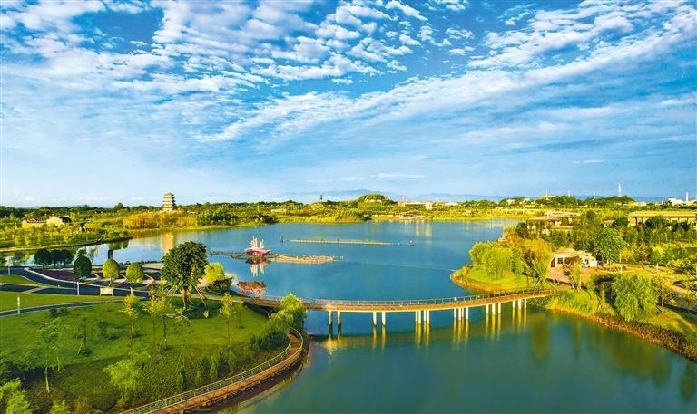 6月11日,重庆市垫江县三合湖湿地公园。近年来,当地以建设生态宜居城市为目标,建成2000余亩湿地公园,融入“运动、智慧、滨水、文化”等理念,形成城景相融的城市生态。龚长浩摄(中经视觉)