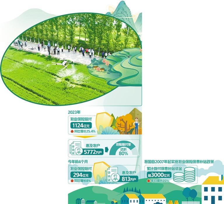 国家金融监管总局的数据显示,去年农业保险赔付1124亿元,同比增长25.4%,惠及农户5772万户,农险赔付率达到80%。