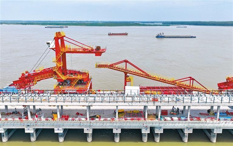 6月13日,江西省九江市红光国际港湖口银砂湾码头项目正在加速建设。该码头是一座散杂货综合码头,建成后将助力九江高标准建设长江经济带重要节点城市。张 玉摄(中经视觉)