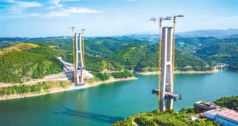 6月14日,湖北省十堰市郧阳区西十高铁汉江特大桥项目进入主梁施工阶段。为应对持续高温天气,中铁十一局项目部采取多种防暑降温措施,并确保施工安全。 古建敖摄 (中经视觉)
