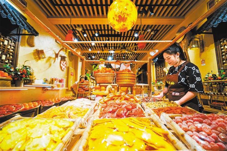 ▲6月13日,福建省福州市鼓楼区三坊七巷历史文化街区,工作人员在特色小店内整理货品。