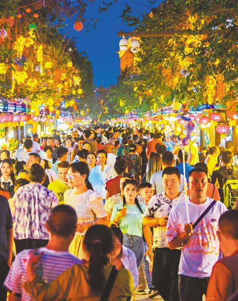 ▲5月25日,江西省吉安市吉州区能仁巷历史文化街区,市民游客在赏夜景品美食。