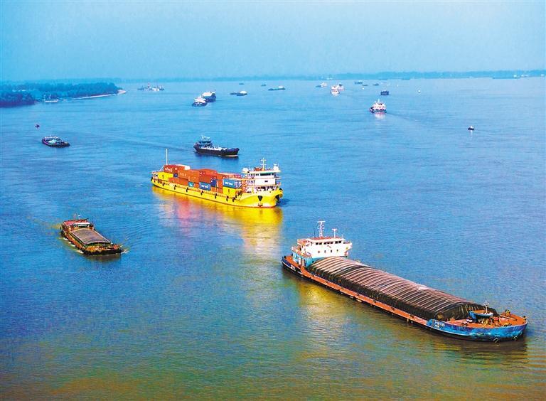 安徽省芜湖市繁昌区新港镇段的长江航道上,货运船舶往返穿梭,一派繁忙景象。近年来,当地统筹推进生态环境保护和经济社会发展,让“黄金水道”发挥“黄金效益”,为长江经济带高质量发展提供强劲动力。肖本祥摄(中经视觉)