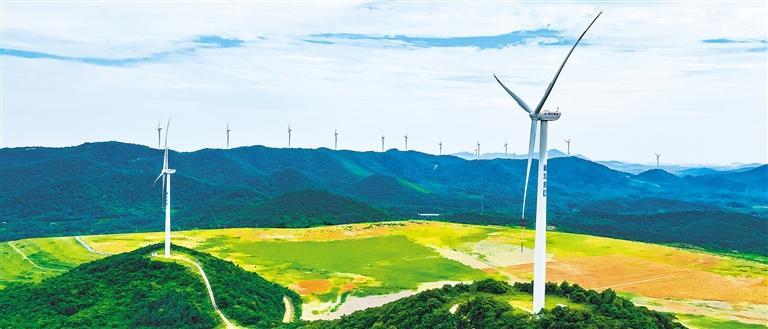 6月16日,安徽省马鞍山市佳山乡,风力发电设施源源不断输送清洁能源。近年来,当地充分利用丰富的风力资源,大力发展绿色能源产业,推动经济可持续发展。 陈 亮摄(中经视觉)