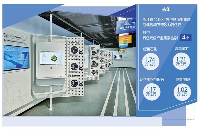 浙江省经信厅近期公布的数据显示,去年,浙江省“415X”先进制造业集群总体规模突破8.6万亿元,其中,万亿元级产业集群达到4个,分别是1.74万亿元的绿色石化、1.21万亿元的高端软件、1.17万亿元的现代纺织与服装以及1.02万亿元的智能物联,新能源汽车及零部件集群也接近1万亿元。浙江提出建设全球先进制造业基地的目标,推动传统产业高端化、智能化、绿色化转型,优化提升产业链、供应链水平,引领浙江制造业迈向价值链中高端,擦亮“浙江制造”品牌。