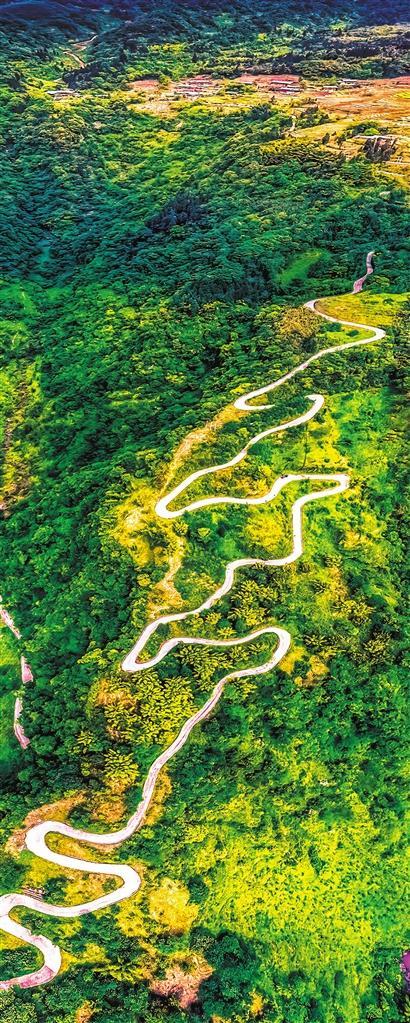 ①6月6日,云南省绥江县中城镇回望村,乡村公路蜿蜒山间,成为连接大山走向外界的致富通道。
