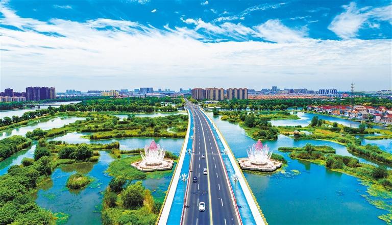②6月1日,江苏省兴化市,农村路与田园、民居构成一幅秀美的乡村画卷。