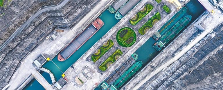右图 6月18日,船舶有序通过三峡双线五级船闸。