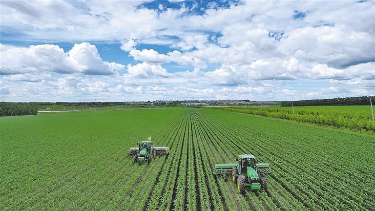 近期,黑龙江省北大荒集团各农业生产单位在夏管阶段组织人力物力抢农时、提单产。这是6月23日农机工人驾驶大马力机车,在北大荒集团建设农场有限公司第四管理区田间对玉米进行中耕追肥作业。 许颖献摄 (中经视觉)