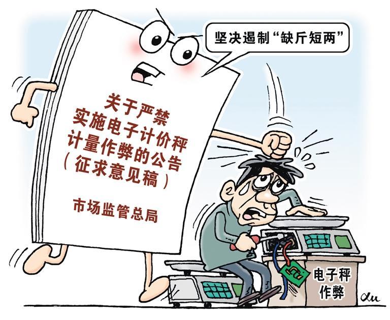 近期,一些不法经营者使用电子计价秤实施计量作弊行为,严重违背诚信经营理念,损害消费者合法权益,破坏市场公平竞争环境。对此,市场监管总局近日发布《关于严禁实施电子计价秤计量作弊的公告(征求意见稿)》,向社会公开征求意见。征求意见稿提出了“八个严禁”,明确了生产、销售、维修、使用、管理全链条各环节禁止事项,强化了各方责任和管理要求。接下来,相关部门应健全和完善投诉、处理机制,充分发挥行政机关的主动性,严厉打击违法行为,遏制市场缺斤少两的不良之风,推动重点监管与长期整治相结合。与此同时,还要持续跟进监管,避免出现执法队伍前一秒离开,后一秒“鬼秤春风吹又生”的现象,为保障消费者合法权益、营造良好市场计量环境护航。 (时 锋)