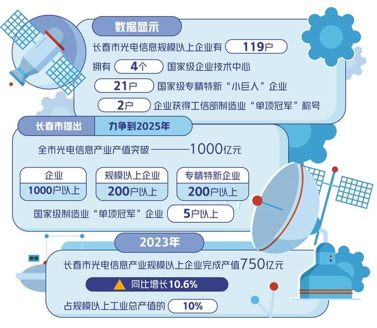 长春市提出,力争到2025年,全市光电信息产业产值突破1000亿元、企业1000户以上、规模以上企业200户以上、专精特新企业200户以上、国家级制造业“单项冠军”企业5户以上;到2035年,产业整体创新水平进入全国第一方阵,打造具有国际竞争力的光电信息产业集群。