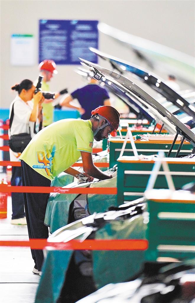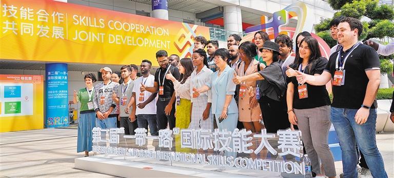 在汽车技术(新能源)赛场上,选手要将新能源汽车从里到外仔细检视,直到发现并修复隐藏的故障;无人机赛事中,要考验无人机的装配、调试、起飞等全流程操作;珠宝加工比赛项目比的是根据设计图纸,运用各种技艺将贵金属材料打造成精美的珠宝首饰……“一带一路”国际技能大赛,搭建起了共建国家深化技能领域交流互鉴、拓宽技能人才培养渠道的平台。