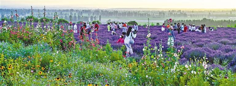 6月26日,新疆北部伊犁河谷霍城县盛开的薰衣草吸引了众多游客观赏。霍城素有“中国薰衣草之乡”美誉,目前当地薰衣草种植规模约8万亩。