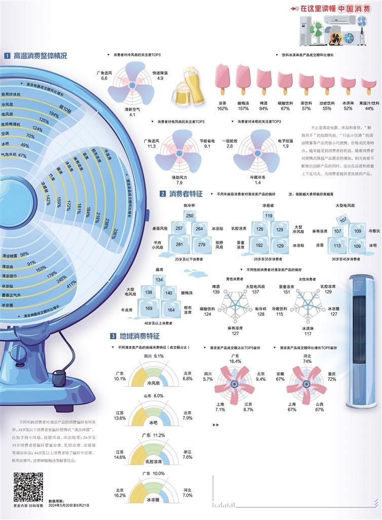 进入夏季以来,各地气温开启“酷热”模式,消费者对降温需求攀升,清凉电器、清凉床品、消暑类食饮等“清凉经济”消费大幅增长。