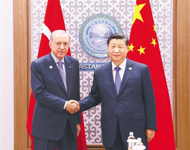 新华社阿斯塔纳7月4日电(记者缪晓娟 赵冰)当地时间7月4日下午,国家主席习近平在阿斯塔纳出席上海合作组织峰会期间会见土耳其总统埃尔多安。