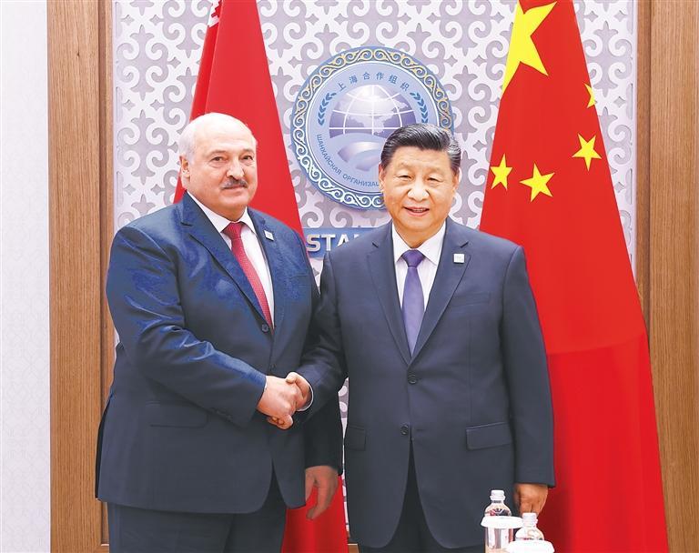习近平祝贺白俄罗斯成为上海合作组织正式成员。习近平指出,2023年,总统先生两次访华,我们共同擘画了中白全天候全面战略伙伴关系发展新蓝图。今年以来,两国各层级密切交往,我们达成的共识得到有效落实。相信在双方共同努力下,中白两国关系一定会持续健康、大踏步向前发展。