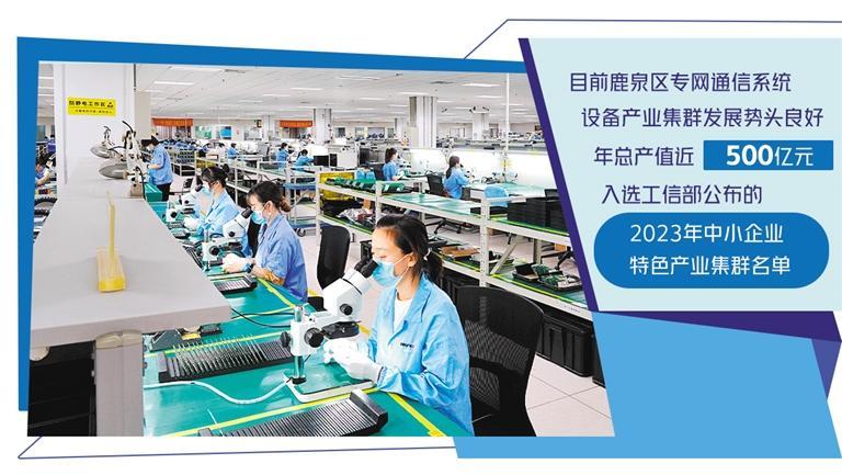石家庄市鹿泉区是石家庄打造千亿级新一代电子信息产业的主要承载地,现代通信、机器人和智能制造、集成电路、空天信息、汽车电子、软件研发等产业基础好、发展快,为该区专网通信系统设备产业集群发展提供了广阔空间。“鹿泉区电子信息产业基础比较深厚,在产业链布局上对专网通信系统设备有较大需求,促成了专网通信系统设备产业的迅速发展。”石家庄市鹿泉区科学技术和工业信息化局一级主任科员贾彦军介绍,该区坚持创新驱动,加速推动项目建设,全力服务企业发展,加快发展新型智能终端。目前该产业集群发展势头良好,年总产值近500亿元,入选工信部公布的2023年中小企业特色产业集群名单。