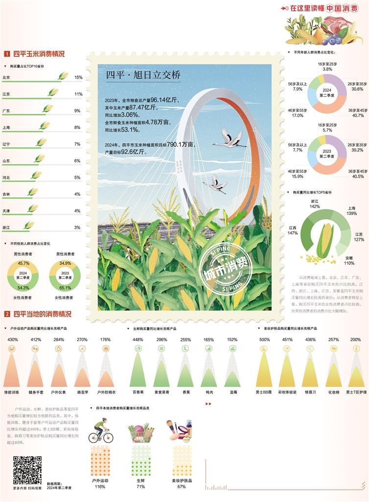 大力发展鲜食玉米。随着生活水平不断提高,人们对鲜食玉米的需求越来越大。招商引资、产业孵化、品牌培育,经过一系列的谋划与探索,四平市的鲜食玉米加工企业不断增多,产业规模快速壮大。2023年,四平鲜食玉米种植面积4.78万亩,同比增长53.1%。通过线下、线上多种销售方式,鲜食玉米越来越多地被端上了消费者的餐桌。
