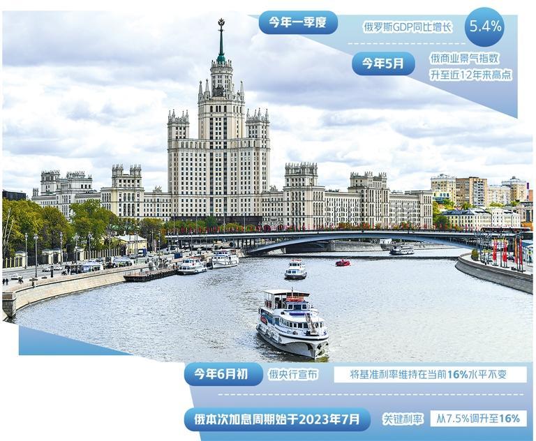 俄央行发布的报告显示,俄经济依然保持“热度”。从经济基本面看,今年一季度俄罗斯国内生产总值(GDP)同比增长5.4%,高于俄央行此前预测。尽管二季度有一定程度放缓迹象,但消费活动仍然比较活跃。企业调查数据和固定资产投资动态表明,俄投资需求仍保持旺盛。此外,俄央行调查显示,今年5月俄商业景气指数有所上升,为近12年来的高点。劳动力市场的紧张局势继续加剧,失业率继续保持历史低位。