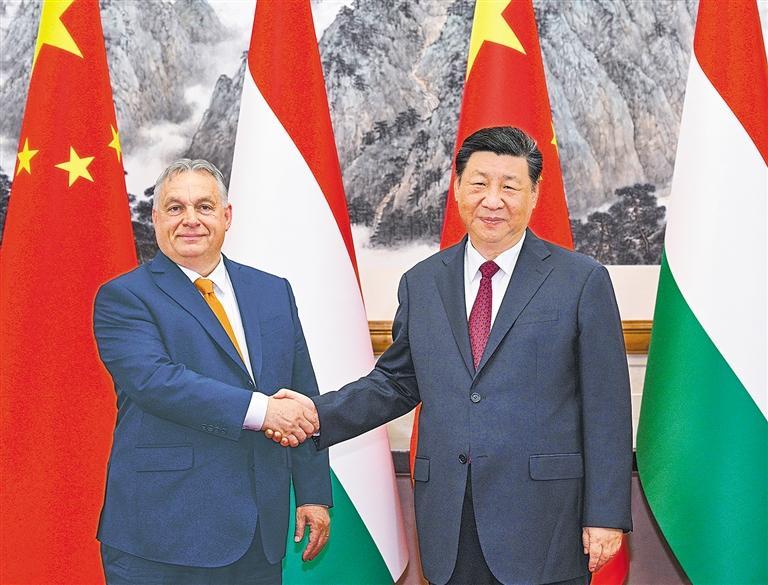 习近平指出,两个月前,我对匈牙利进行成功国事访问,我们宣布将中匈关系提升为新时代全天候全面战略伙伴关系,为今年两国建交75周年赋予新的历史意义,也为中匈关系高水平发展注入强劲动力。下周,中国共产党二十届三中全会将在北京召开,中国将进一步全面深化改革,推动高质量发展和高水平对外开放。这将为中匈合作提供新机遇、注入新动能。双方要保持高层交往,深化政治互信,密切战略沟通协作,继续坚定相互支持,加强各领域务实合作,高质量共建“一带一路”,持续丰富中匈新时代全天候全面战略伙伴关系内涵,更好造福人民。