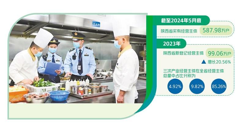 “一业一证”行政许可制度改革只是陕西打造一流营商环境的缩影。2021年以来,陕西持续开展“营商环境突破年”活动,当地市场监管系统在市场准入、监管执法、保护创新等多方面积极探索,为各类经营主体提供一系列高效便利化服务。2023年,全省新登记经营主体99.06万户、增长20.56%。三次产业经营主体在全省经营主体总量中占比分别为4.92%、9.82%、85.26%,经营主体结构进一步优化。