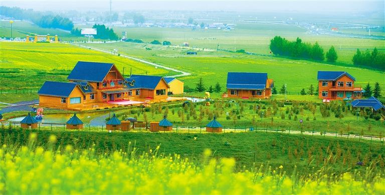 7月6日,甘肃省张掖市民乐县南丰乡扁都口旅游避暑景区,金色的油菜花田、避暑山庄与巍峨祁连山相映成景。近年来,当地发挥祁连山冷凉区自然优势和生态资源禀赋,大力发展生态观光农业、康养旅游等“避暑经济”产业,推动农文旅融合发展。