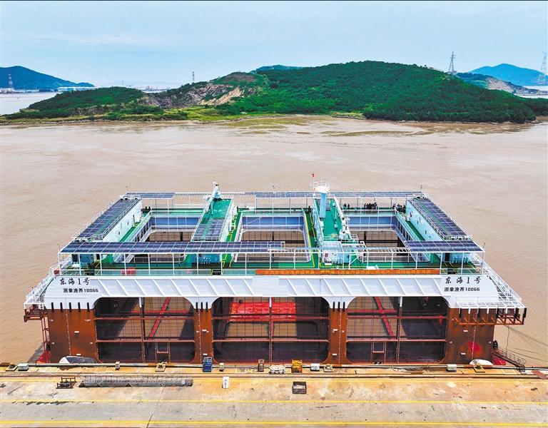 ▲7月10日,浙江首座深远海半潜式养殖平台在宁波正式交付。该平台在海上可利用波浪能和光伏发电等方式实现能源自给自足,同时配备了智能化养殖信息系统,能进行远程操控和自动投喂。