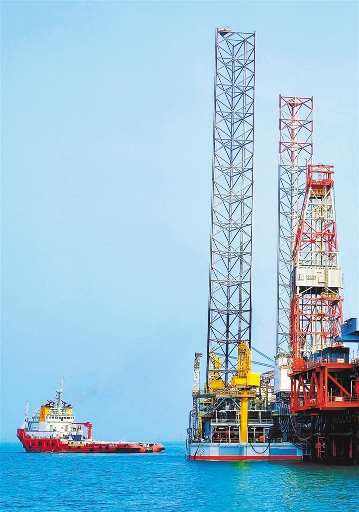 ▲6月30日,胜利五号钻井平台顺利就位埕北4EB井组并开始钻井作业。前6个月,胜利海上油水井作业完井84口,作业成功率达100%。
