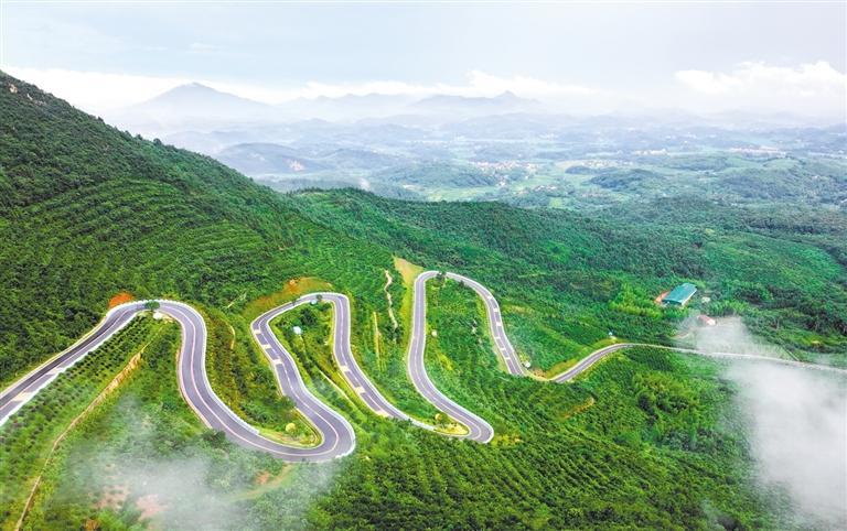 近年来,安徽合肥庐江县以建设“四好农村路”为主线,改扩建4000多公里乡村公路,串起30个乡村旅游重点村。图为7月12日拍摄的庐江县矾山镇农村公路“六道拐”路段。巢志斌摄(中经视觉)