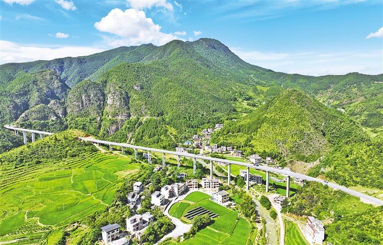 7月16日拍摄的江西省遂川县草林镇唐虞村乡村公路。近年来,当地坚持生态优先、绿色发展理念,以“四好农村路”串联起城市和乡村,改善山区群众出行条件。四通八达的路网,成为助力乡村振兴的发展路、幸福路、致富路。