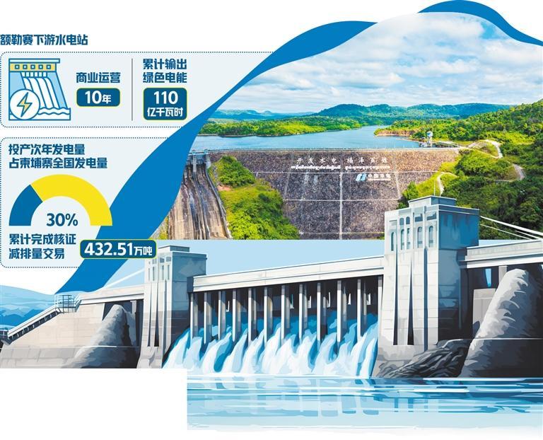 作为柬埔寨重要电源项目,额勒赛下游水电站以33.8万千瓦的装机规模、年均约10亿千瓦时的发电量,极大缓解了柬埔寨电力供应紧张局面。当地人说,现在的工厂更多了,生活质量更好了,城市的夜景更美了。10年来,额勒赛下游水电站累计输出绿色电能达110亿千瓦时,投产次年发电量占到柬埔寨全国发电量的30%,年均发电量占到柬埔寨全国发电量的10%以上。