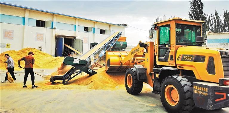 ▼7月2日,新疆维吾尔自治区阿瓦提县,金帆粮油购销有限责任公司塔木托拉克镇粮站在收购夏粮。